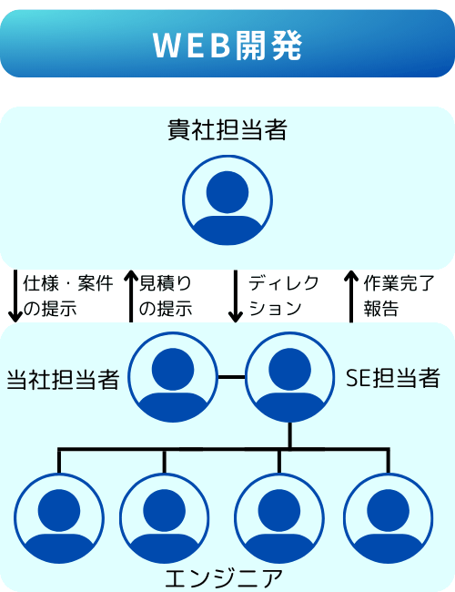 WEB開発(受託開発)はプロジェクト1件に対して、お見積り、契約が必要になる開発形式となります。